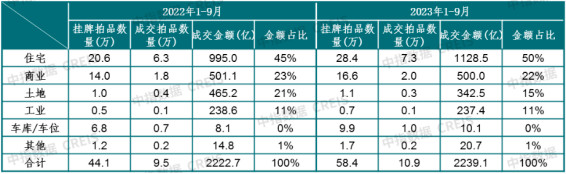 中指院最新发布的2023年三季度全国法拍市场监测报告。截至2023年9月,全国法拍市场挂拍各类法拍房源58.4万套。