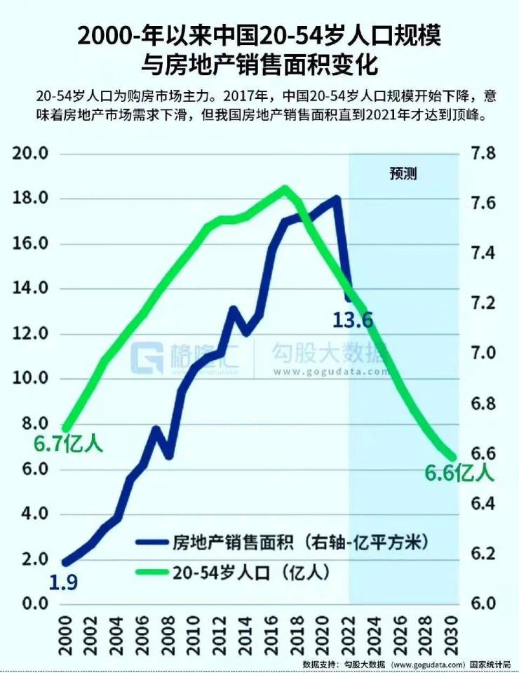 勾股大数据预测,到2030年我们的20岁至54岁人口规模会从高点时期下落至6.6亿。
