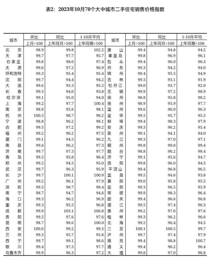 11月中旬,10月份全国70城商品住宅销售价格指数发布。