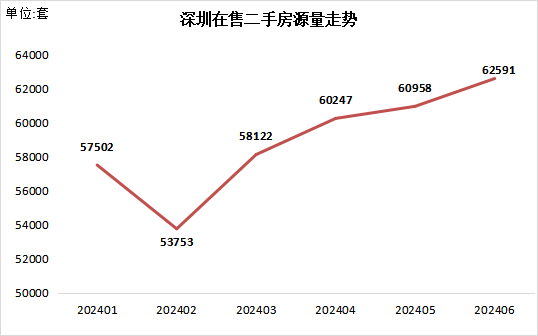 截至2024年7月1日,据深圳市房地产信息平台公开在售二手房数量统计,深圳全市有效在售二手房源62591套,对比6月1日统计的60958套在售房源增加1633套,环比增长2.7%。从月度走势看,在春节假期复工后,市场二手房在售量呈现持续增长态势,当前量较春节假期间在售量增加近1万套,反映年后在市场有所好转的背景下,业主出售意愿在持续上升。