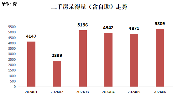 根据深房中协统计,2024年6月全市二手房录得(录得量系指深房中协以二手房买卖合同发起时间为口径统计的数据,并非最终成交过户套数)5309套,环比增长9.0%,同比增长66.3%。
