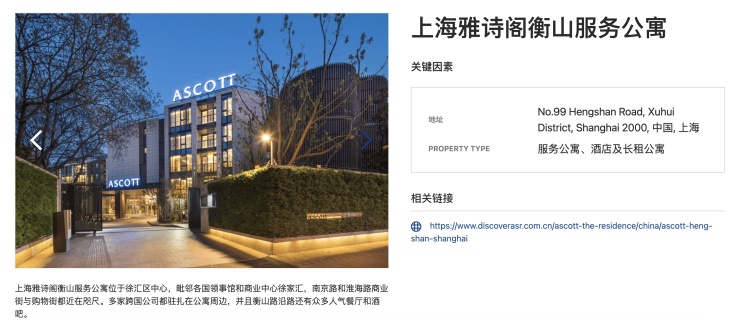 上海雅诗阁衡山服务公寓:进一步优化投资组合,继续在中国市场寻求投资机会