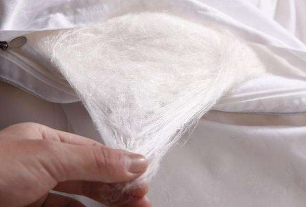 长丝绵由于纤维足够长,容易拉制成网,因此具有上等的蓬松度,所以更加保暖,舒适性也更高。而短丝绵刚好相反,蚕丝短,易跑动,保暖性和舒适性差很多。现在市场上很多蚕丝被是柞蚕丝或者短纤维蚕丝制作的蚕丝被,一般经过化学漂白,不环保。所以选购的时候,一定要多留心,看看商家是否有质检报告和证书。