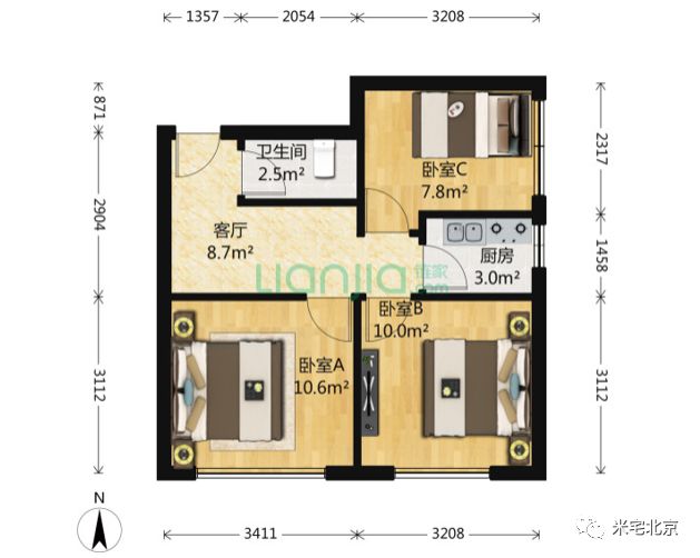 虽然面积小,但没有奇葩户型,比较方正,使用率高,甚至可以多改出一间卧室,是不是觉得很惊喜,上车有望了?