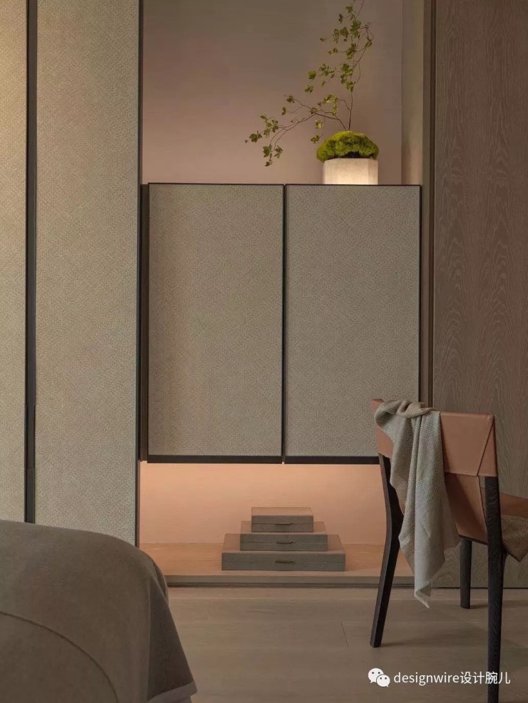 艺术的注入令空间呈现出超越视觉另一维度的意义,与之搭配的还有石材的波浪造型及天然肌理、如先进酒店般柔和温婉的灯光,他们的色调色温都处理的极为精致。