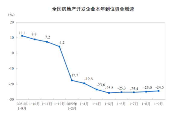 从国家统计局10月24日发布的较新数据来看,1-9月份,商品房销售面积和销售额降幅持续收窄,其中,销售额降幅已经连续3个月收窄;同时,房企到位资金降幅也连续两个月收窄。