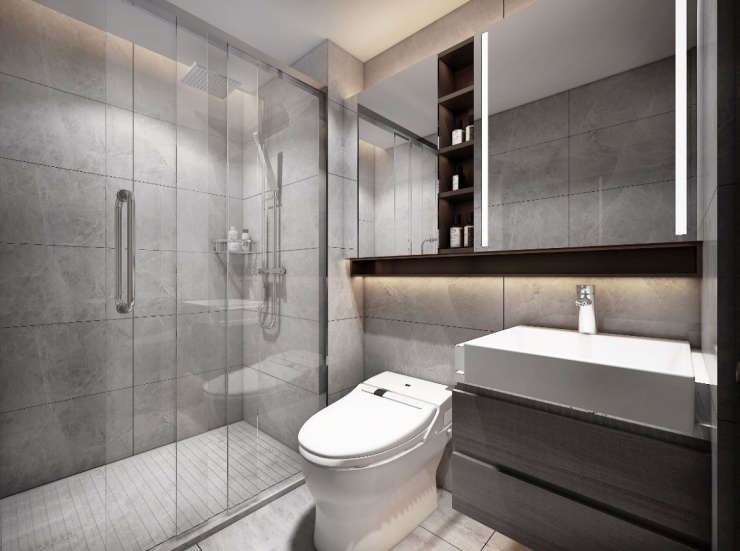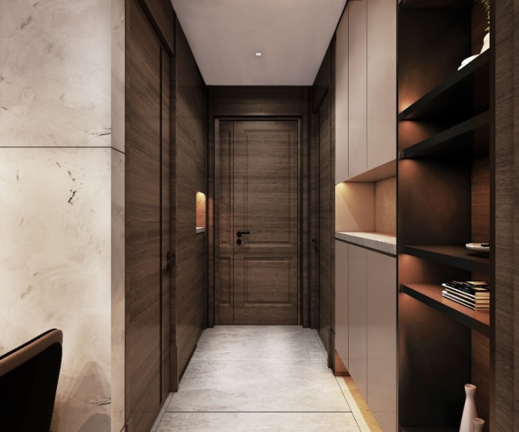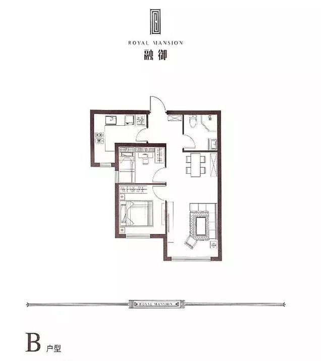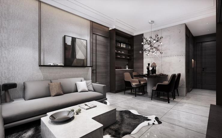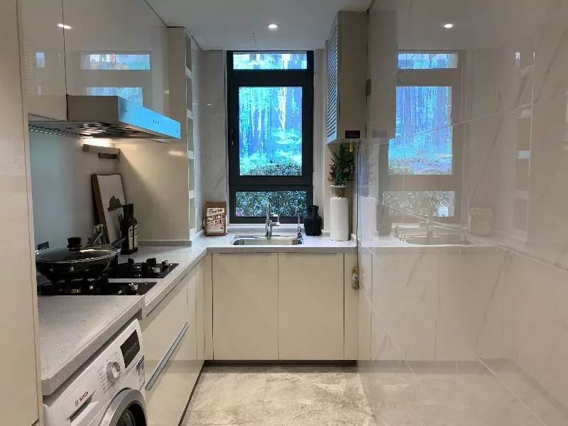 一居室的户型是纯南向的,明厨暗卫,客厅面宽3.3米,厨房设计的是一个U型厨房,能够很大程度的增加厨房的使用空间。卫生间是一个干湿分离的设计。