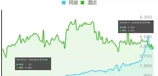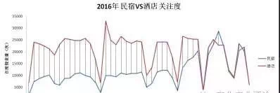 2016年8月份开始,民宿与酒店的关注度已经持平,但是曝光度还远远不及酒店。人们想要更多了解有关民宿的信息,但有关民宿的内容与酒店相比,显得微不足道。