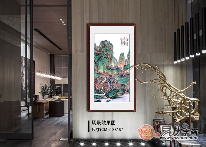 1、开门见画,字画代表的是一种文化涵养,一开门就能见到一幅雅致的小品或竖幅字画,一能体现居着的涵养,二则可缓和进门后的仓促感。长期受到字画的熏陶,也能提升主人自身的文化档次。