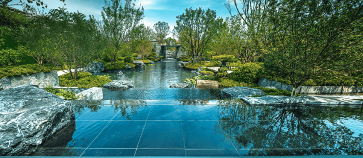 规划是设计的起点:埏埴以为器,当其无,有器之用。同理,规划先设计空间结构,融入景观才有灵魂。中建房山国贤府整体中轴对称布局均衡、方正、有序,堆山造水,将诗情画意演绎到游园生活中,营造中轴对称围合景观,为业主呈现别具格调的生活体验。项目整体12栋住宅对称布局,7-17层的洋房和小高层,南北通透、尺度疏阔,楼栋分布以中轴线为主,留出中央绿地公园,融合古代院落式布局,营造出整齐庄重的氛围感。
