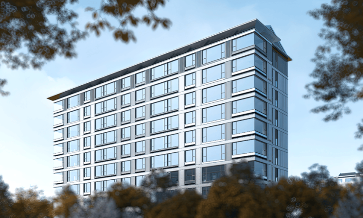秉持立面公建化的设计宗旨及极简主义美学理念,取古建形之精华,用现代材料演绎,将建筑外立面精雕细琢,整体建筑里面采用三段式设计法则,色彩采用舒朗清雅的米黄色和蓝灰色系。大面积的玻璃和小面积的石材搭配,集稳重和空灵于一身,端庄雅致,整体营造自然、通透、轻盈、简洁的社区氛围。