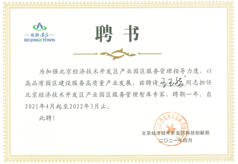 为推动北京经济技术开发区(以下简称:北京经开区)产业园区转型升级和土地高效利用,提升产业园区服务能力,以高品质园区建设服务高质量产业发展,经开区科技创新局公示了2020年经开区产业园区运营服务机构申报工作结果。鸿坤产业旗下园区—鸿坤·云时代(北京亦庄京芯园投资发展有限公司),以优秀的园区运营能力成功纳入《北京经济技术开发区产业园区运营服务机构储备库》。鸿坤产业执行董事、总裁王玉然受聘担任北京经济技术开发区产业园区服务管理智库专家。