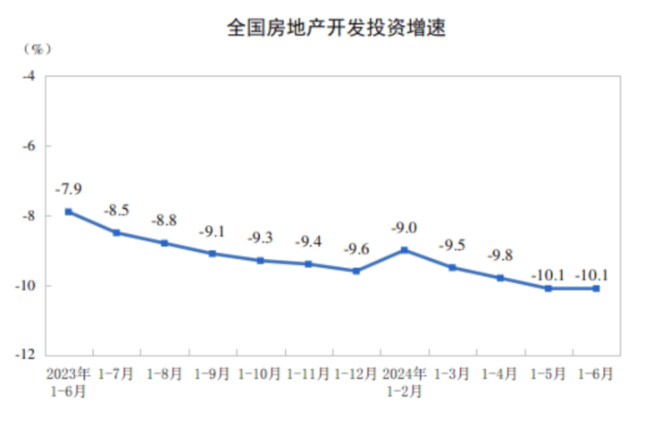 7月15日,国家统计局发布2024年1—6月份全国房地产市场基本情况。数据显示,上半年房地产开发投资尚未出现明显好转迹象,同比下降10.1%。