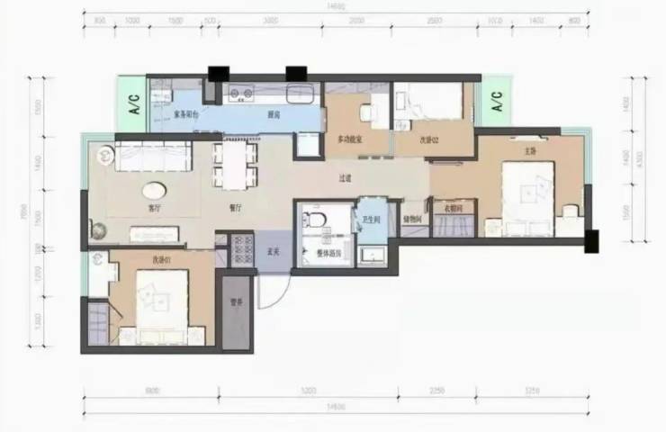 130平方米四居:南北通透,四室两厅,改善型选择。