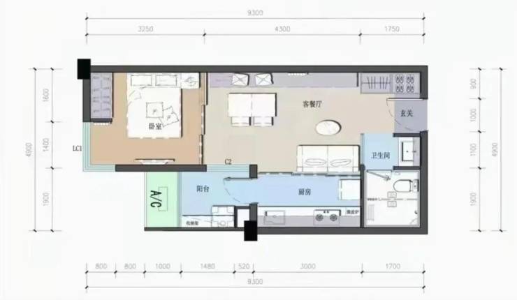 67平方米两居:西向两居室,满足小家庭基本需求;