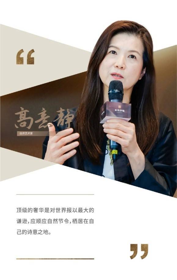 高意静提到,先进的奢华是对世界报以较大的谦逊,中国人顺应自然节令的生活、栖居在自己的诗意之地,中国式的奢华,从来都是以最谦逊的态度对周遭世界报以敬意,这是生活方式的精神维度。