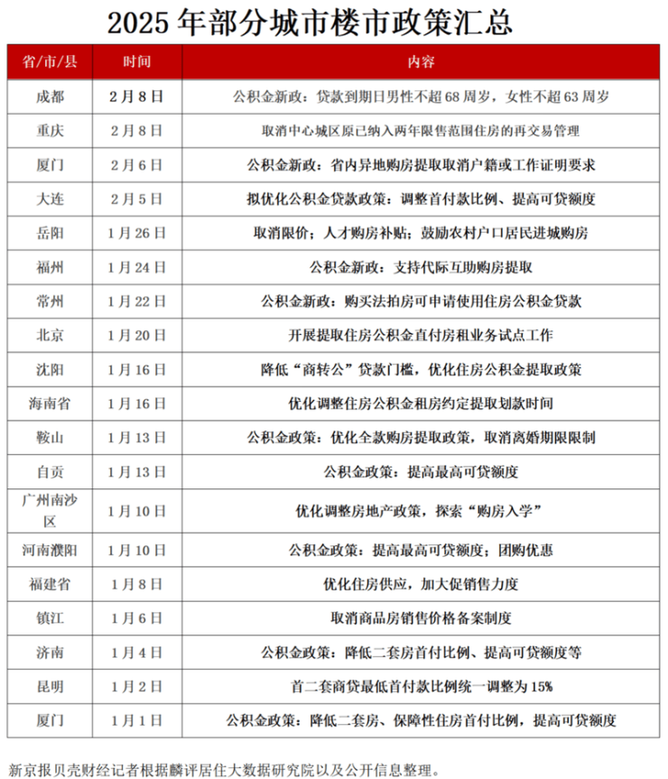 从目前来看,自2025年以来,各地的政策仍在持续发力,其中优化公积金贷款政策最为突出。据不完全统计,在2025年以来各地发布的19条楼市政策中,有11条涉及到公积金政策。春节过后,有4个城市发布楼市新政,其中就有3个城市涉及到公积金。此外,各地结合房地产利好政策,推出形式及内容多样的促销补贴等活动。