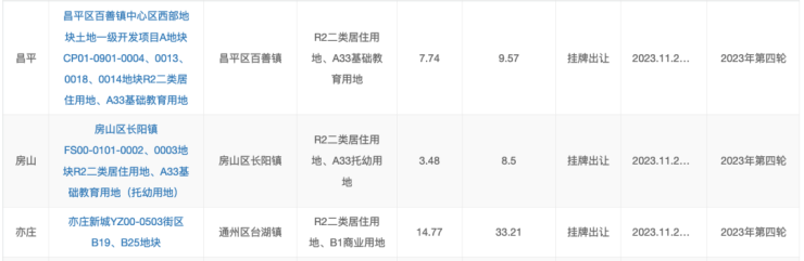 另外12宗全部位于郊区,顺义4宗,通州3宗,昌平2宗,大兴、亦庄、房山各1宗。