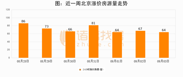 根据诸葛找房数据显示,北京24小时涨价房源量为64套,较09月02日减少3套,环比下降4.5%。与此同时,涨价房源占比小幅回落,对于购房者来说是一个入市窗口期,购房者可抓住时机入市。