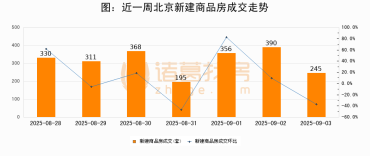 【北京成交日报】09月03日新房成交245套、二手房419套;涨价房源64套