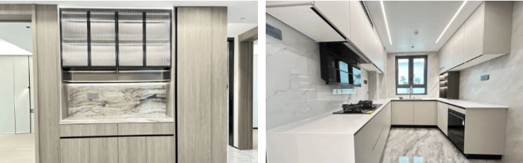 这是楼盘的主力户型,入户既有家政间也有玄关柜,宽U型厨房。主卧套房实现了南北通透。