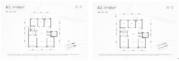 A1与145㎡的A2很相似,区别:A1中间户,A2是边户。