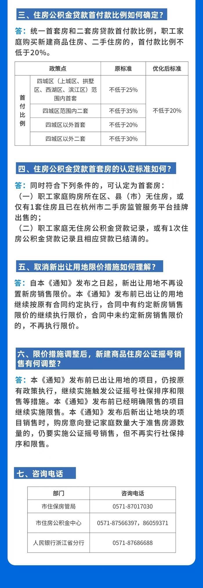 10月9日,杭州市城乡建设管理高质量推进领导小组办公室发布《关于进一步优化调整我市房地产相关政策的通知》(以下简称《通知》),推出落实国家住房信贷政策、优化住房公积金贷款政策、取消新出让用地限价措施、因地施策加大购房支持力度、加大房地产融资协调工作力度等五条措施。