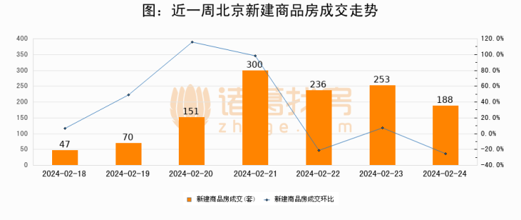 【北京成交日报】02月24日新房成交188套、二手房118套;涨价房源130套