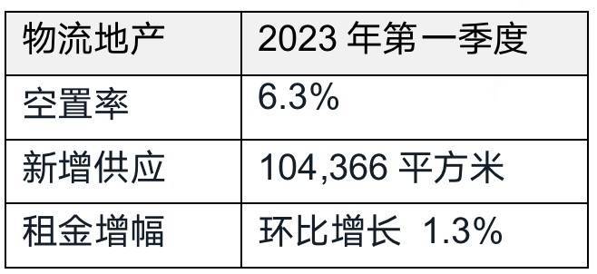 物流市场需求持续增长,平谷子市场表现优异。随着疫情防控在2022年末全面放开,经济活动的恢复显著利好物流板块,2023年一季度市场租赁需求更为活跃。多个超过1万平方米以上的大体量新租成交在一季度录得。新增需求以物流、电商和生物医药为主。其中,平谷子市场需求增量明显优于其他区域,呈显著上涨态势。在供应方面,一季度共有两个新增项目入市,总建筑面积为104,366平方米,其中一个表现最佳的项目以高达90%的预租率入市。新项目的集中供应使市场空置率被小幅推高0.5个百分点至6.3%。