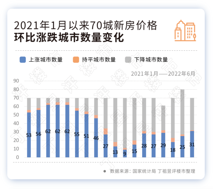 从国家统计局公布的6月70城的房价指数来看,新房价格同比上涨的城市已缩减至21个,下降的城市达到了48个。