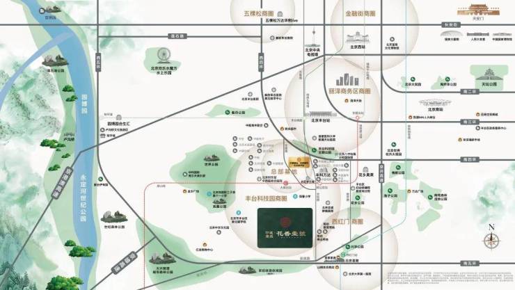 项目周边,京开高速公路、樊羊路、丰科路;南四环、京良路、南五环等多维路网,接驳繁荣生活。