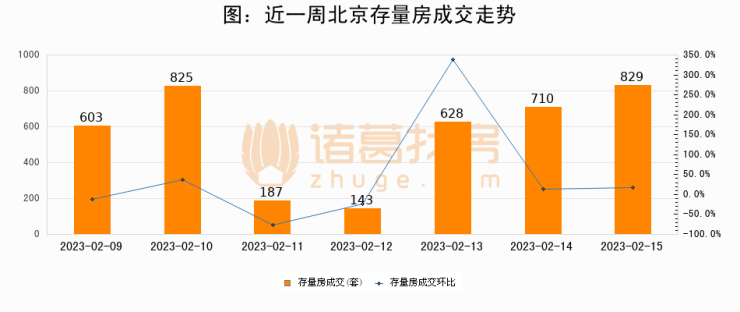 从存量房来看,2023年02月15日北京存量房单日成交829套,比昨日增加119套,环比上涨16.8%。从近一周存量房成交来看,北京存量房日均成交套数为560套,其中02月15日成交量最高为829套,02月15日单日成交829套,高于近一周平均水平48%。