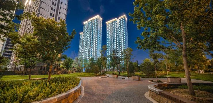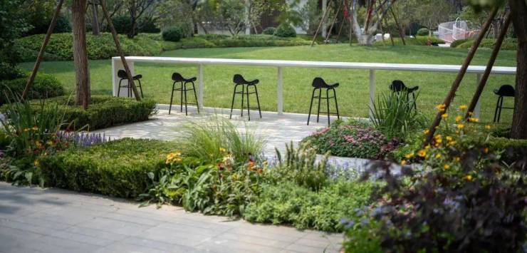 社区内中央景观草坪花园是一个精心设计的绿色心脏,它以开阔的草坪空间为核心,草坪以高大乔木蒙古栎作为中心点,四周环绕着季节性树木,四季皆有风景,更能让业主亲近自然。