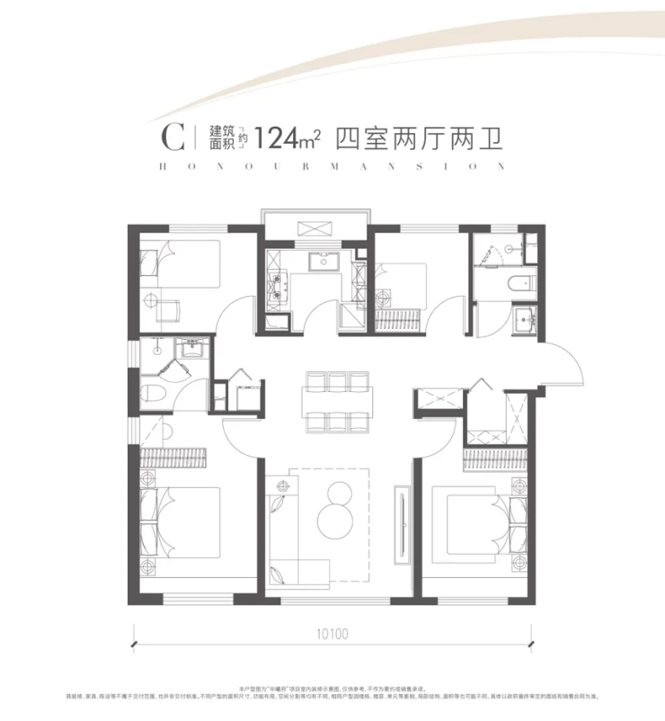 接下来是约124㎡的四居,四叶草经典格局,卧室分布于四角,互不打扰。