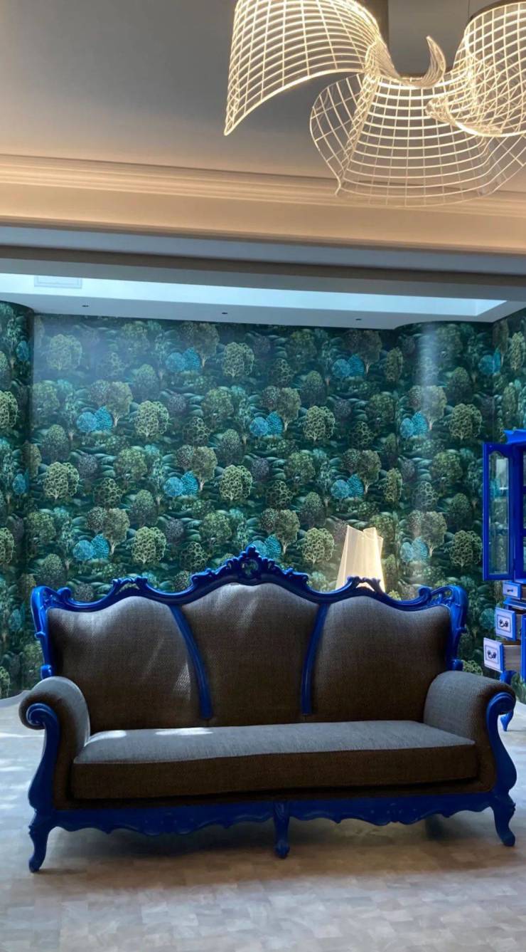 高明度的红色、深蓝、浅蓝、黑色,组合成代表着自然生命力的海藻、月球星空,给人以极大的视觉冲击,利用光影、大胆撞色,打造独特的艺术魅力。