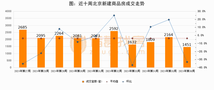 【北京成交周报】第36周新房成交1451套,二手房2951套,涨价房源800套