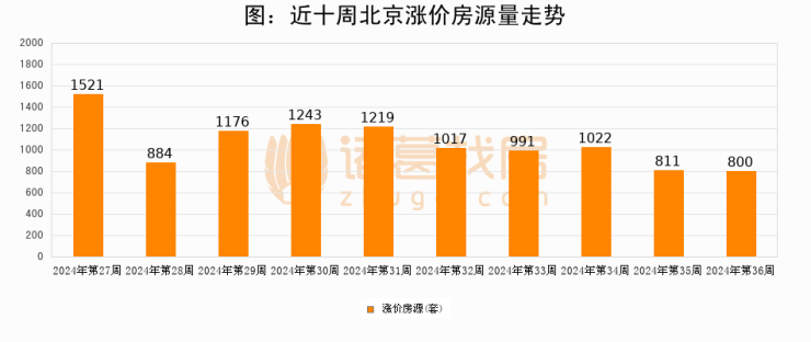 从调价房源来看,第36周北京涨价房源800套,较上周下降1.4%。与此同时,36周涨价房源占比回落0.4个百分点,业主信心小幅波动,购房者可则需入市。