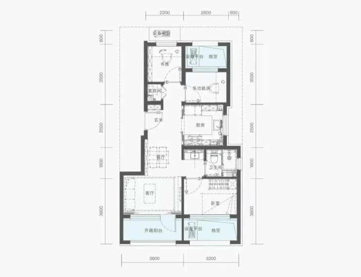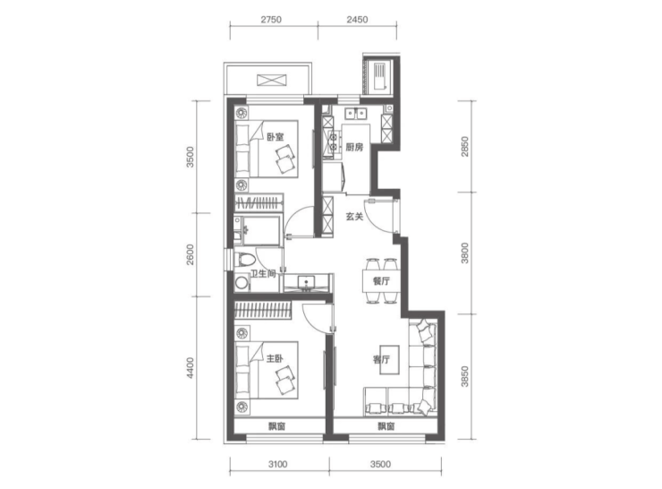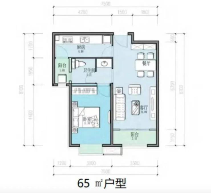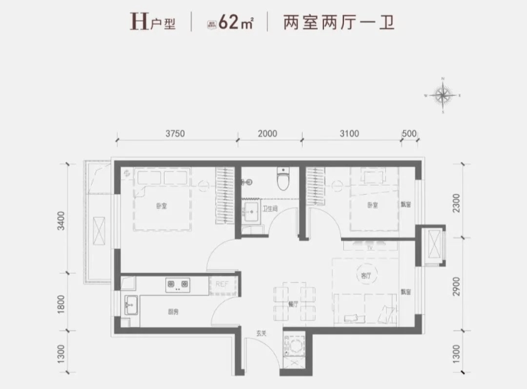 璟贤瑞庭84㎡的三居做了双卫,在房山较为少见,赠送面积不少。