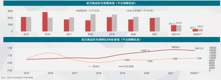 “从销供比来看,武汉住宅市场整体暂处供需均衡状态,2022年前5个月销供比为0.98,仍处于合理区间。”