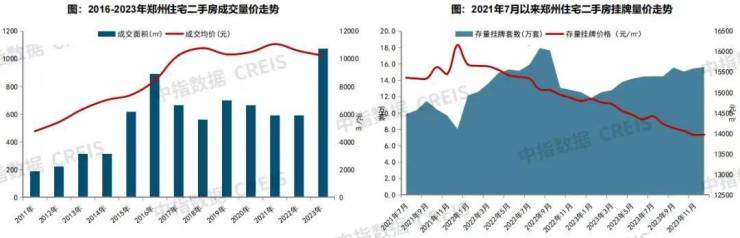 郑州新房库存高企,为了去化新房价格从2022年的13492元/㎡下滑至2023年的12867元/㎡,另一头,主城区二手房挂牌了也在飞涨,即便“以价换量”,也拦不住量和价齐齐往下走。