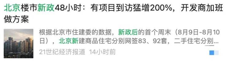 据报道,新政落地后的首个周末(8月9日-10日),北京楼市迅速升温。