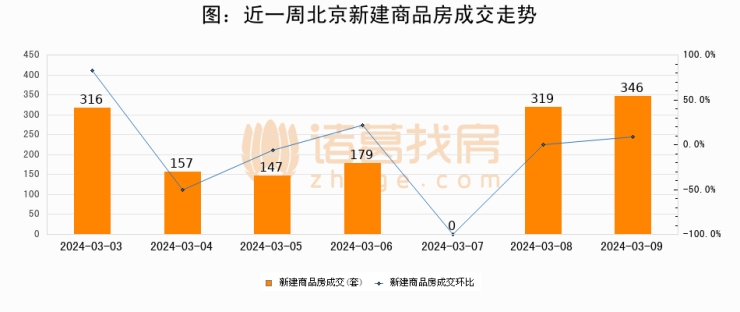 【北京成交日报】03月09日新房成交346套、二手房155套;涨价房源131套