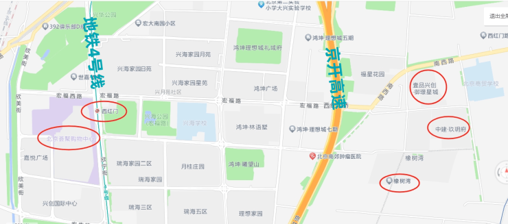 从下图可以看出,西红门板块被京开高速划分为东西两部分,西边商业配套比较完善,像荟聚、宜家都在这个板块,地图4号线西红门站也在这里;集中供应的新房则在京开高速的东边,城市界面比较新。