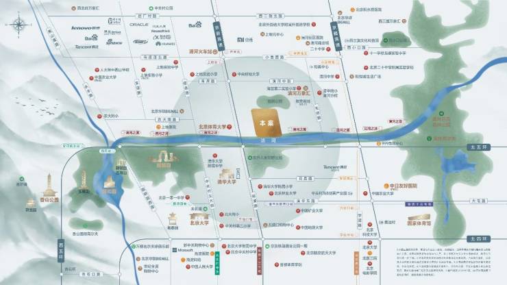 海淀区朱房村0030地块,北五环与京新高速东北角,紧邻清河,距地铁13号线上地站约1.3公里。