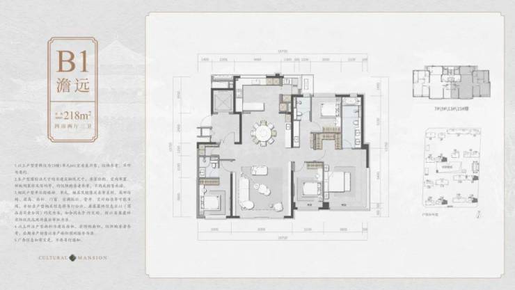 澹远:建面约218㎡四房两厅三卫