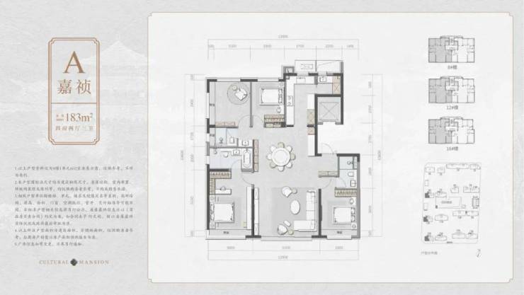 嘉祐:建面约183㎡四房两厅三卫