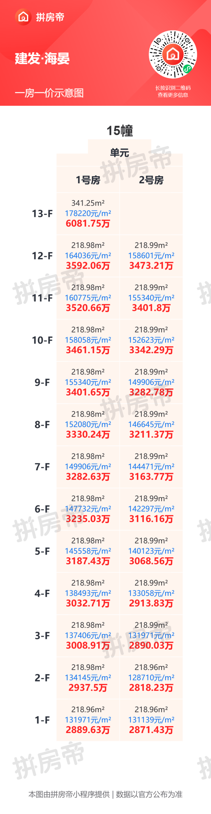 而顶级的340平米户型,其均价更是高达约17万元/平米。