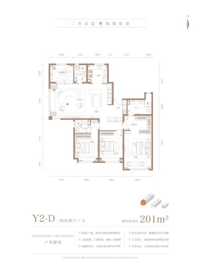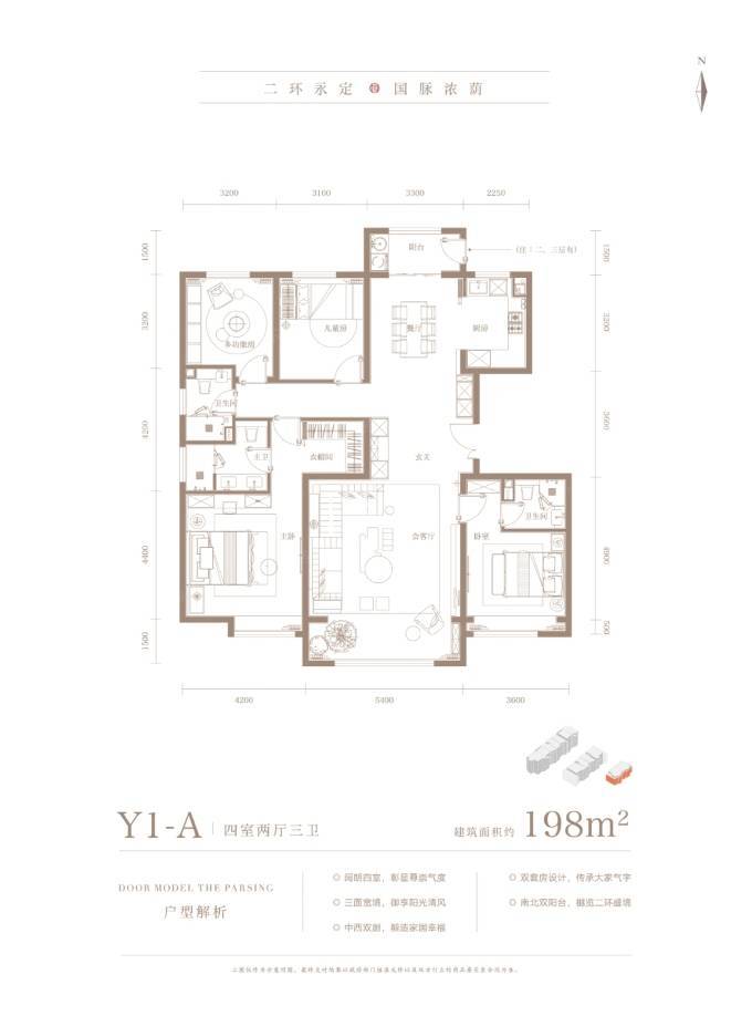 1号楼一共一个单元,总层高4层,全部都是198㎡双卧+客厅南向三面宽,顶层是155的三居。