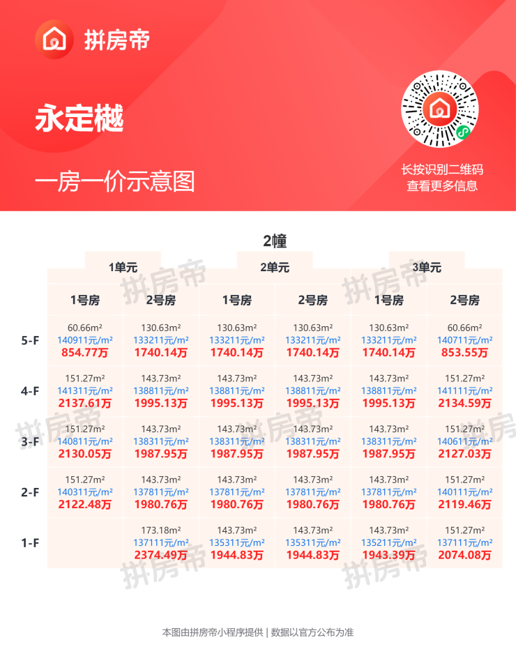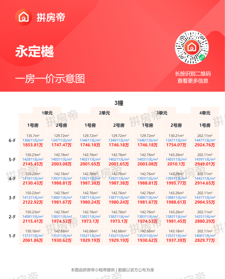 项目预计25年底精装交付,如下是一房一价表。