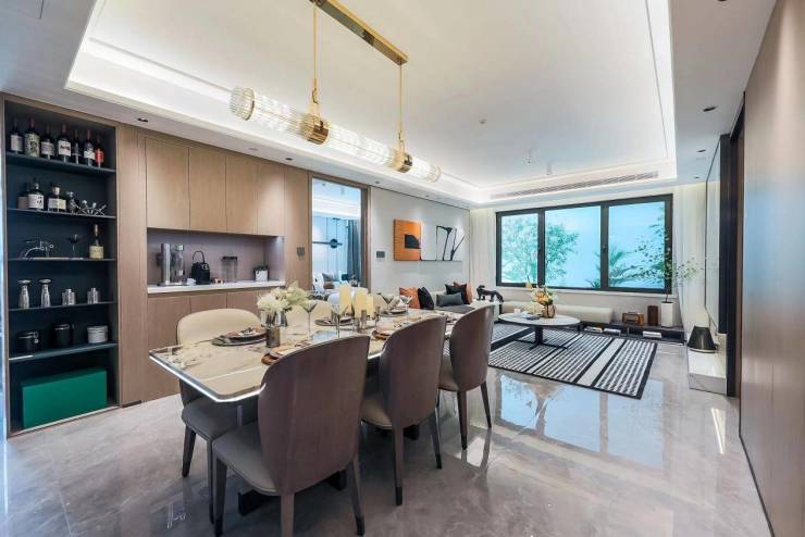 客厅面宽做到了约4米,采光面和观景视野扩大,增强室内的日照时间和空气的流通性。汇聚居住、社交、娱乐等功能,一站式解决家庭生活所有需求。